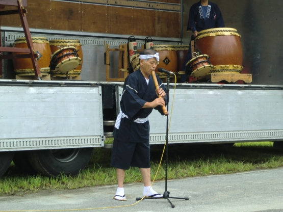 ▲橋本さんによる尺八の演奏。白井会長の太鼓と合わせて演奏しました